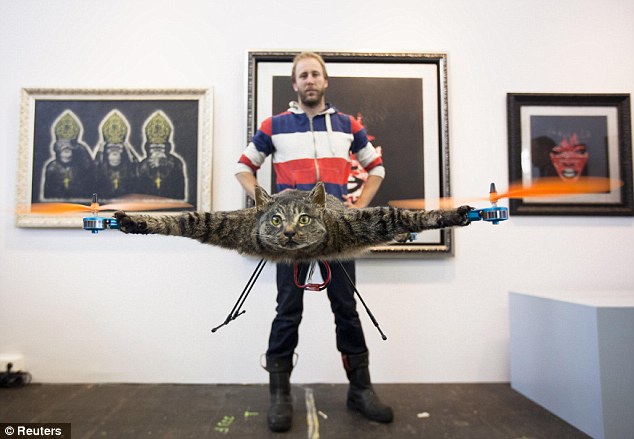 Tribute: Dutch artist Bart Jansen made the The Orvillecopter as part of a visual art project to pay tribute to his cat Orville